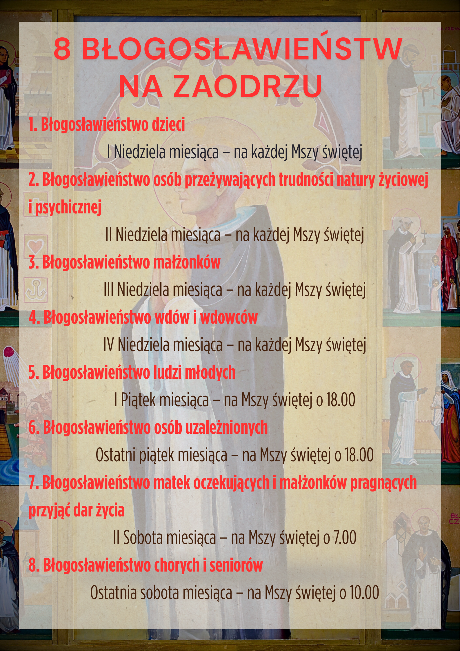 Administrator danych osobowych informuje, że wszystkie dane osobowe zamieszczone w ogłoszeniach Parafii Rzymskokatolickiej bł. Czesława, umieszczone zostały za zgodą osób, których dane dotyczą lub umieszczone są na podstawie prawa.